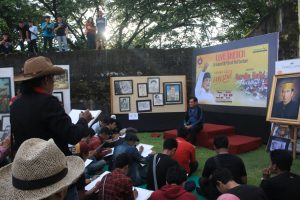“Jarang pejabat atau calon pejabat datang ke sini. Tentu kita sangat bersyukur karena memang pentingnya seni yang bisa membangkitkan semangat kehidupan,” ujarnya.